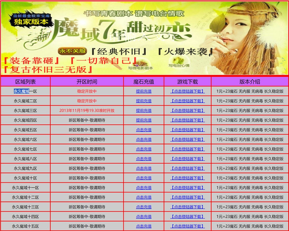 1元=23魔石【长久魔域】三无版 Win一键商业服务端 复古怀旧+黄金卡+BOSS之家+回收系统+配套开区网站+详细搭建教程