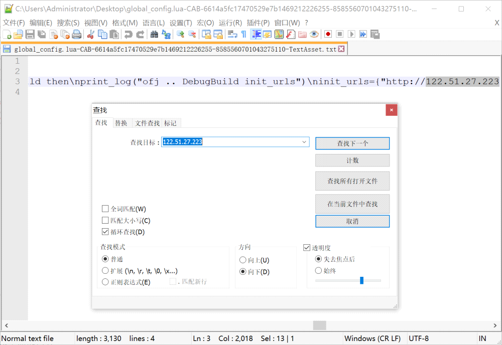 4、使用Notepad++工具打开导出的这个文件,并搜索修改里面的内容,修改好后保存