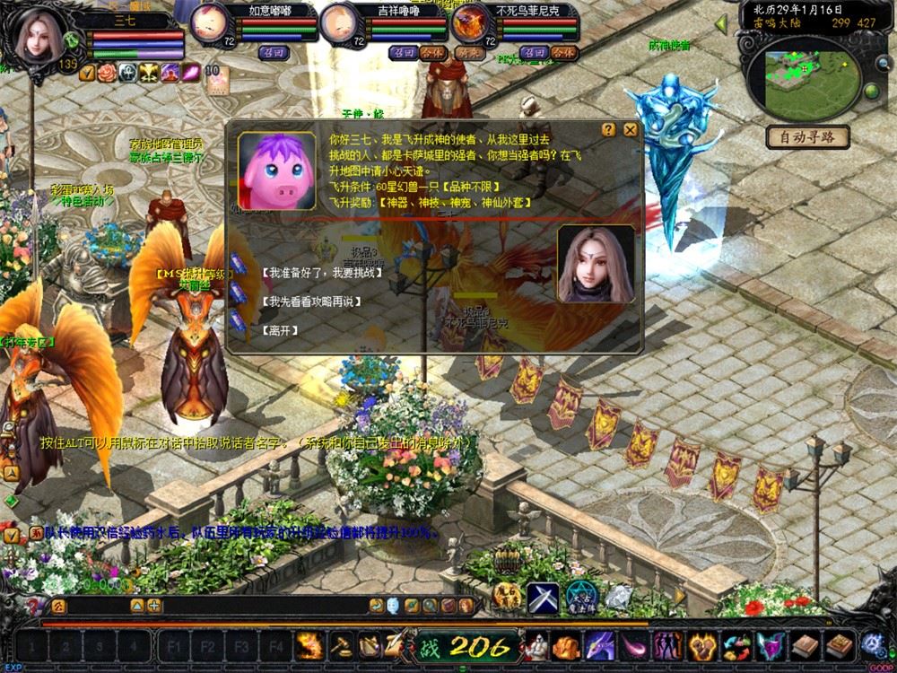 7.60星宝宝可以挑战渡劫飞升,程序和官方一样,挑战成功后奖励御剑飞行+各职业高级技能书;