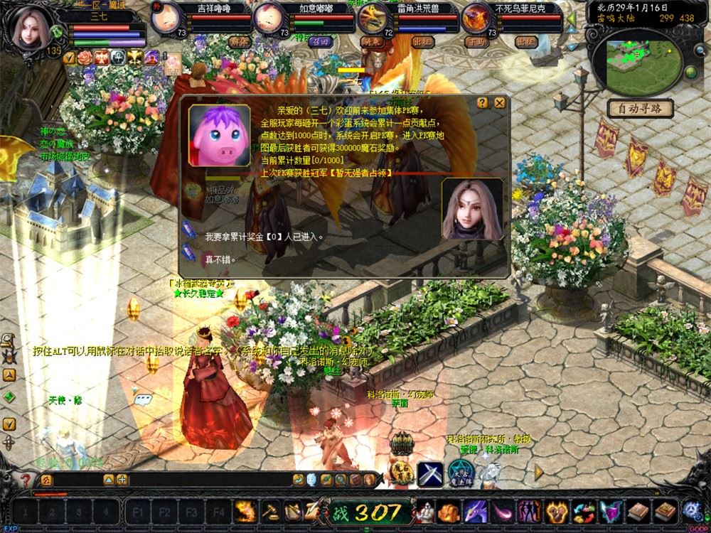 ① 新区团战奖励:新区开区3小时后团战;奖励800万魔石!团战结束找NPC老头领取!
