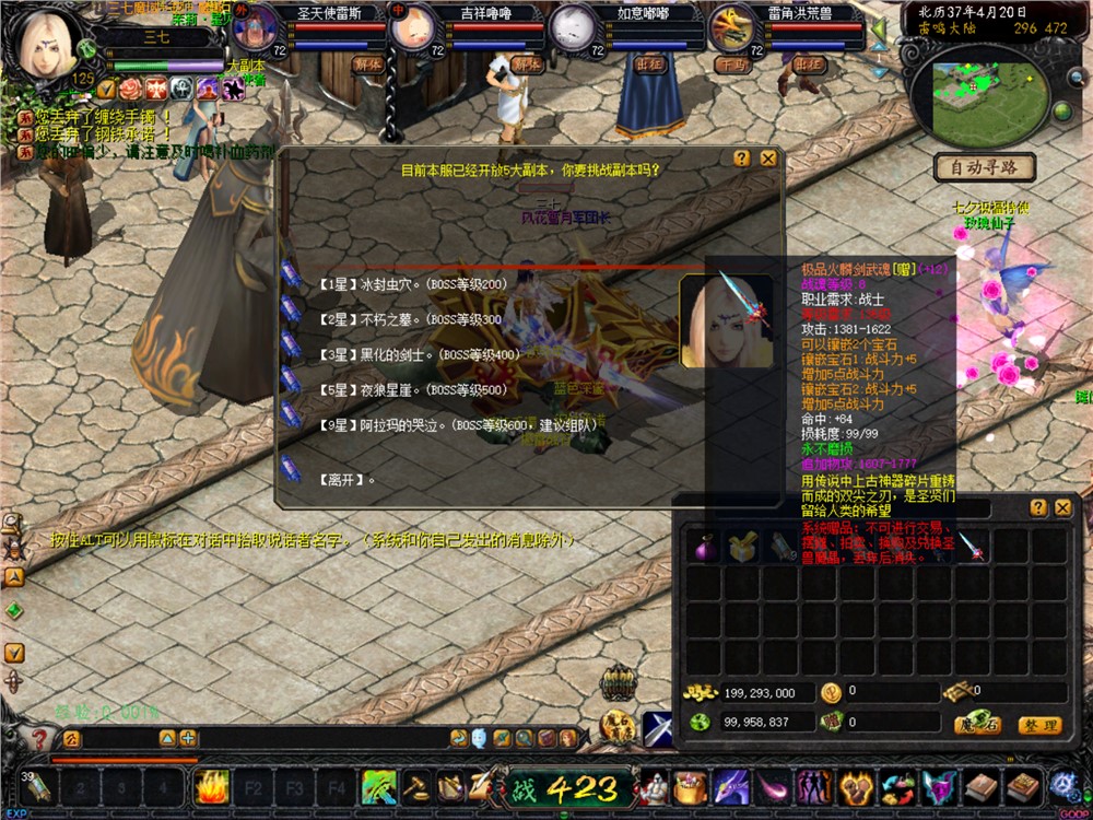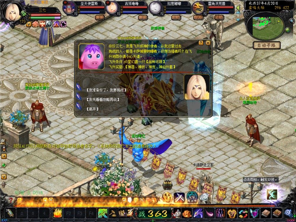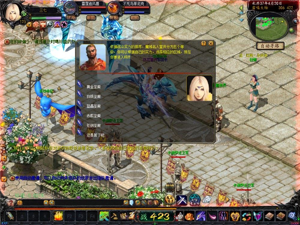 3、经典三职业、多种副本,飞升成神,神之技能、系统回收、日PK赛、等级奖励等;