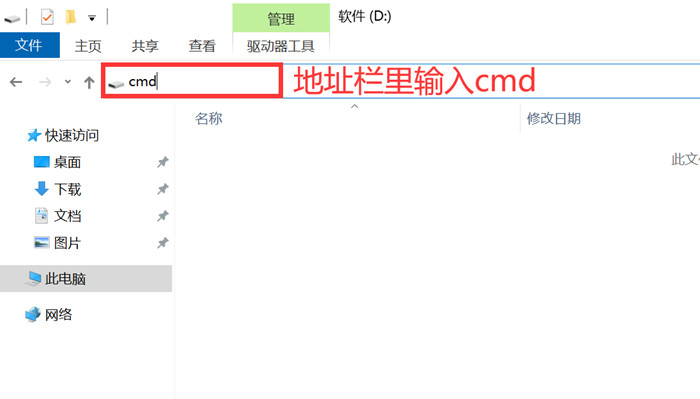 1、在电脑资源管理器的地址栏里,输入cmd,然后回车键