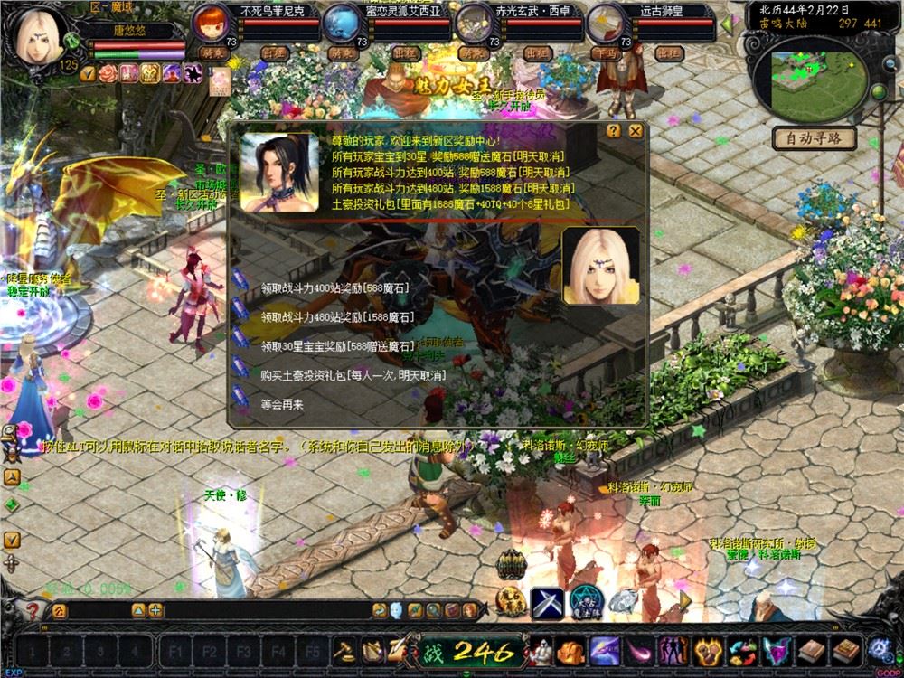 新区团战奖励:新区3小时后团战奖励5000魔石;