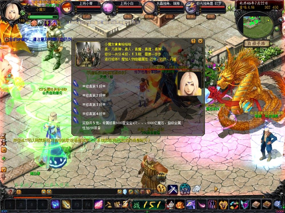 2、修魔副本:加人物属性魔攻。进副本需要200点真气,真气通过打年或者打副本可以获得;