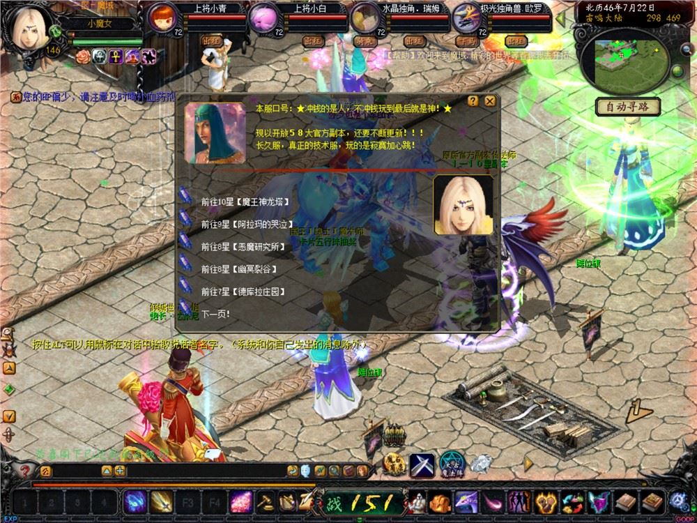 3、一定要认真看副本里的NPC说明,别什么都不看,自己不会打副本,就在服里骂副本垃圾。 副本主要讲究人物整体防御和攻击(宝宝属性很重要),不光靠战斗力,但战斗力太低也是不行的;