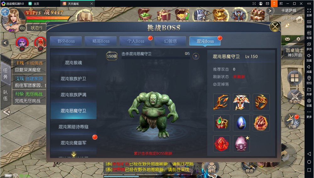 2.修改混沌BOSS设置,击杀5只野外BOSS必刷新一只混沌BOSS;
