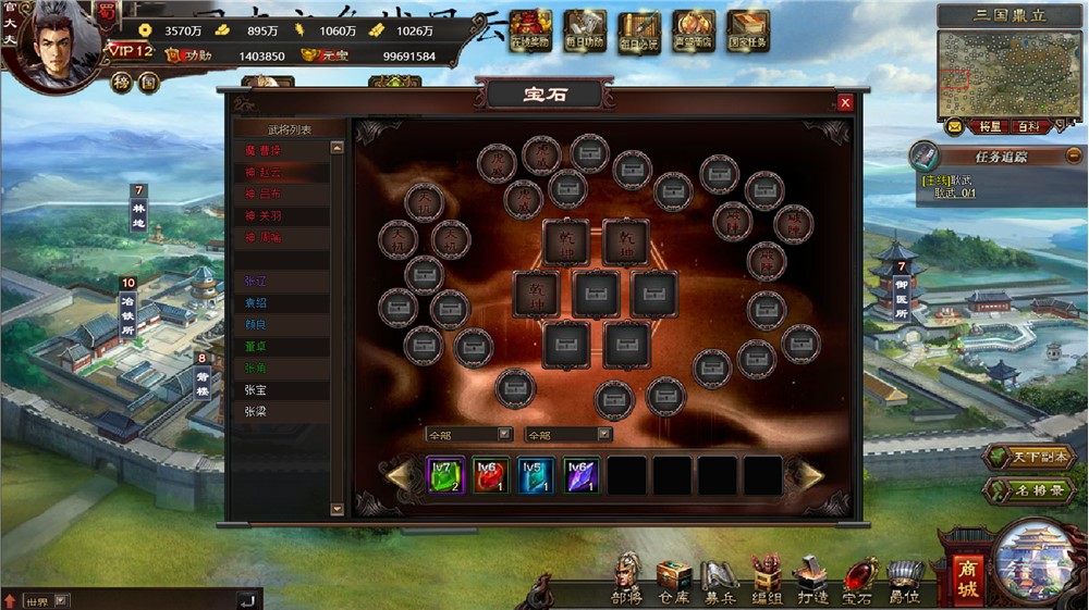 版本介绍: 1.收取邮件上限300个,邮件标题上限50,邮件内容上限3000字,战报上限3000字! 2.背包格子数上限1500个,开启一个背包价格100功勋! 3.英雄令上限999个,每日增加英雄令50值,强化等级上限500! 4.官职上限200个数,每日可叫阵的99次数! 5.初始化背包格子数上限500。宝物背包初始化格子数上限200,猎宝仓库初始格子数上限365! 6.20孔宝石,宝物镶嵌上限20,武将转身等级上限255! 7.科技点上限99999999 ,每日完成的任务数量上限30,探访次数上限30! 8.城市资源产出时间间隔(10分钟),玩家可领取单项资源点上限999,城市产出结算给国家的时间间隔(1小时)! 9.建筑等级上限300,部队伤兵恢复间隔时间800(s) ,及时排行榜存入数据库时间600(秒)! 10.被动技能上限150级,拉令上限(国家)10个,角色最大200等级! 11.新增兵种开放5阶! 12.新增加4个副本NPC为神魔天兵! 13.新增加套装:魔王套、神魔套! 14.新增9名神魔将! 15.新增军团可建5个! 16.非变态平衡版!