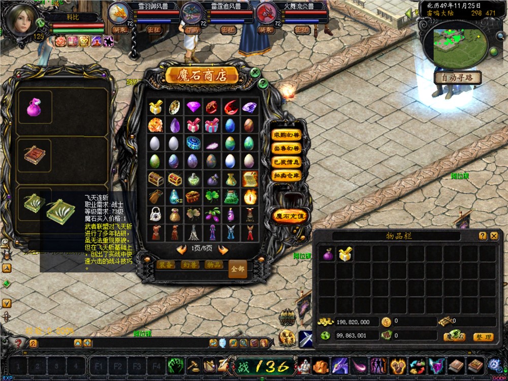 6、BOSS刷新时间很快,所有BOSS都爆出特球和6-12副宠、各种石头和MS袋;