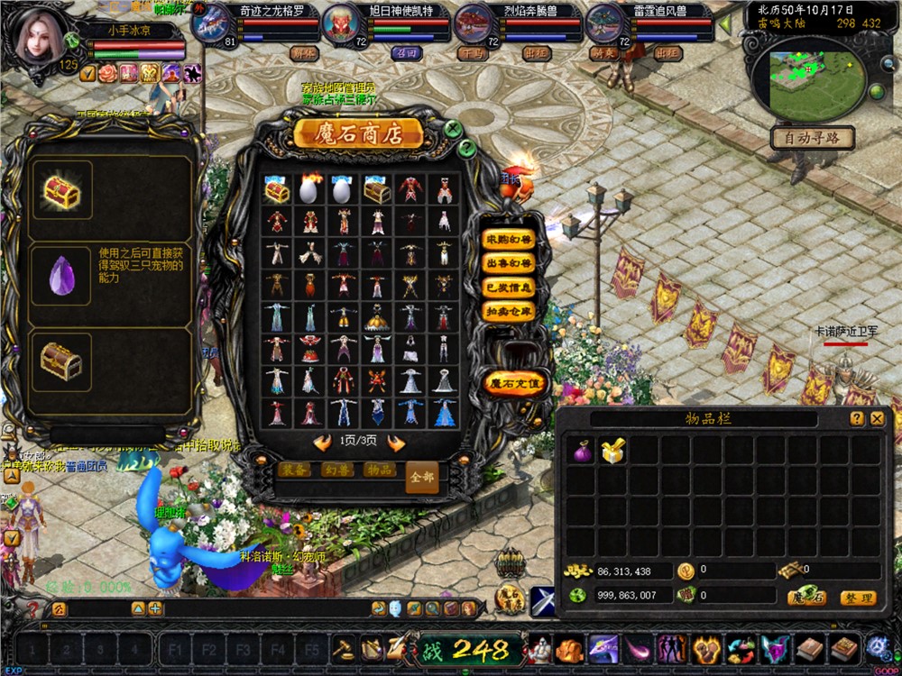 9.删除魔石充值和魔石商城, 新增游戏VIP4抽奖功能,可以抽到+12等一切稀有物品,必要道具均可在雷鸣杂货店使用金币购买;