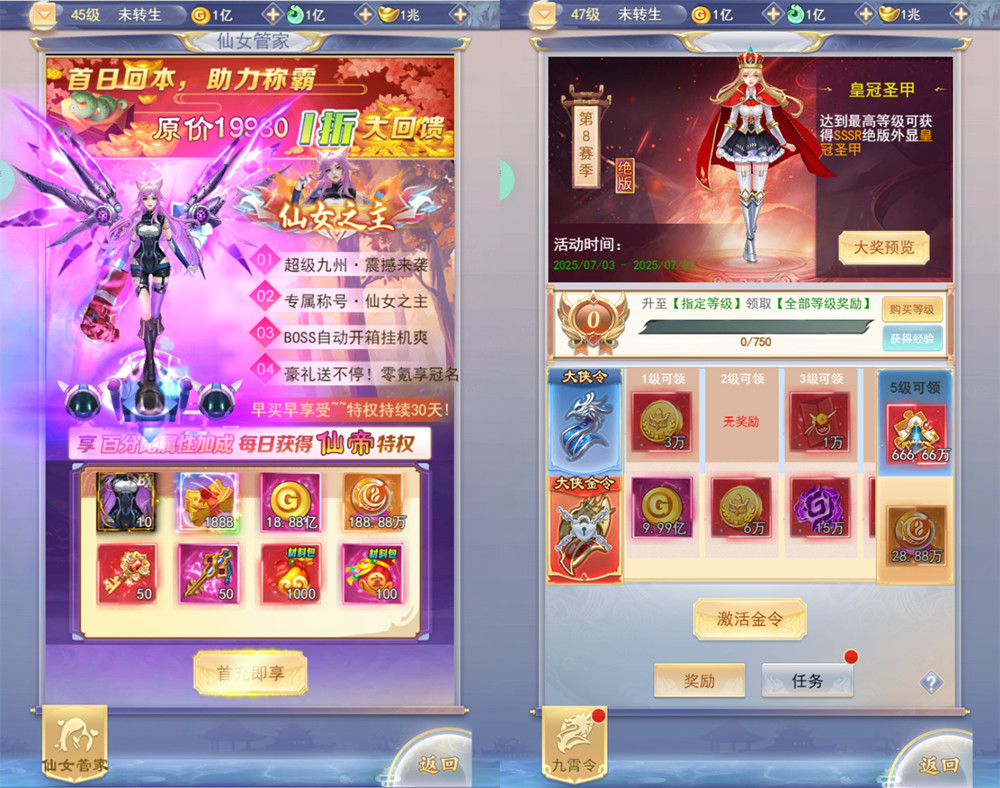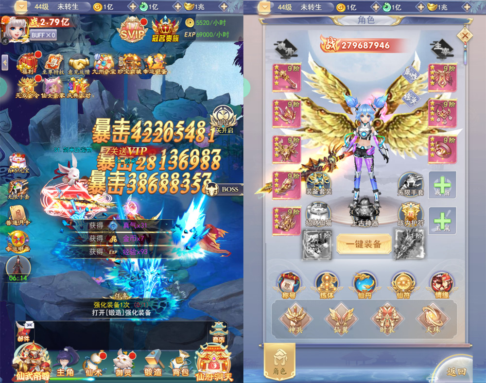 2.新增幻化:神兵、仙翼、时装、天珠,冠名图鉴到350;
