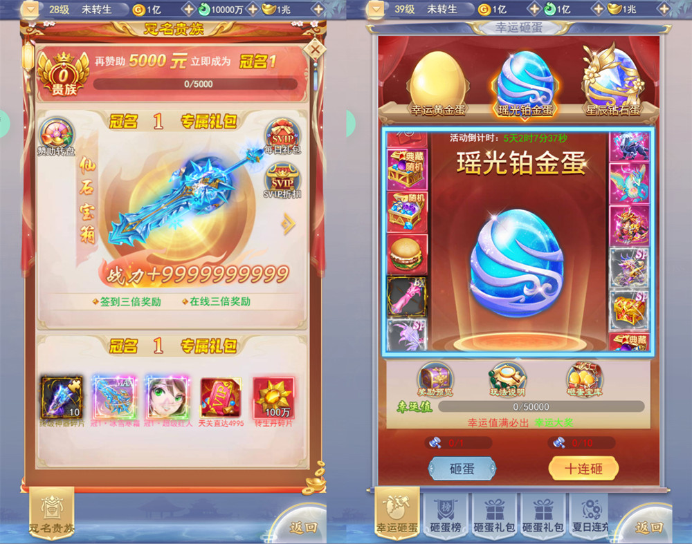 5.修复砸蛋:幸运黄金蛋、瑶光铂金蛋、星辰钻石蛋;