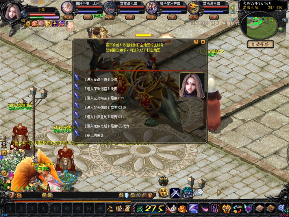 6、【魔帝降世】雷鸣门口每15分钟刷新1只魔帝,打死入包3千万MS,爆满地星水,副本钥匙和各种珍贵物品〔玩家必争之地〕;
