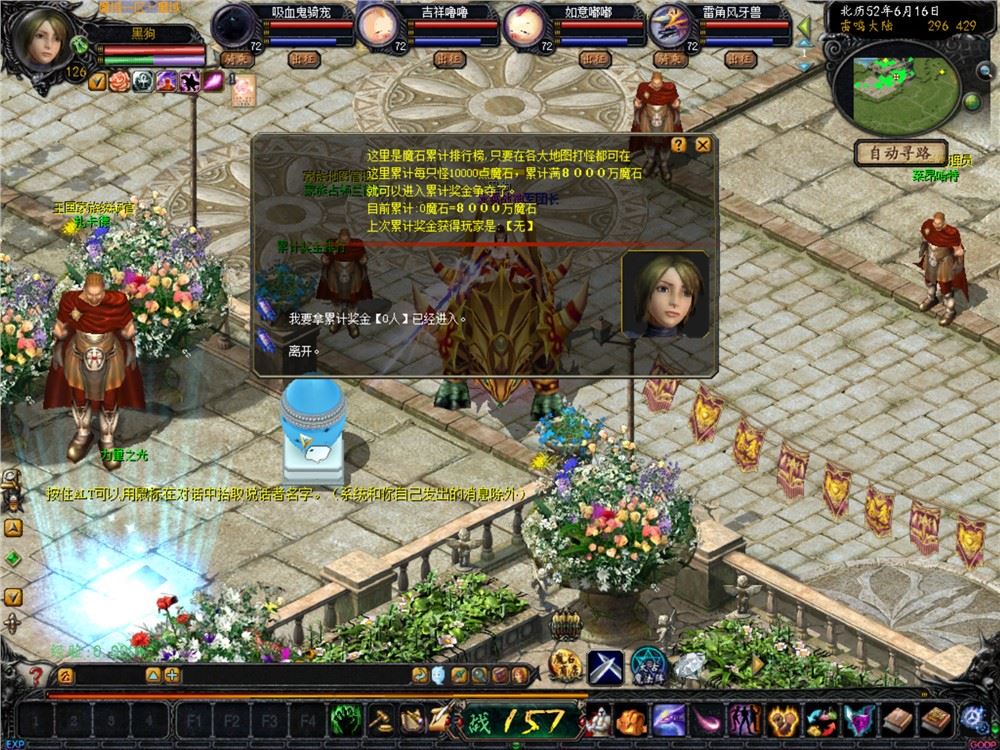 4、加入魔石争霸赛,累计魔石达8000万魔石即开赛,所有玩家每杀一只小怪累计10000魔石;