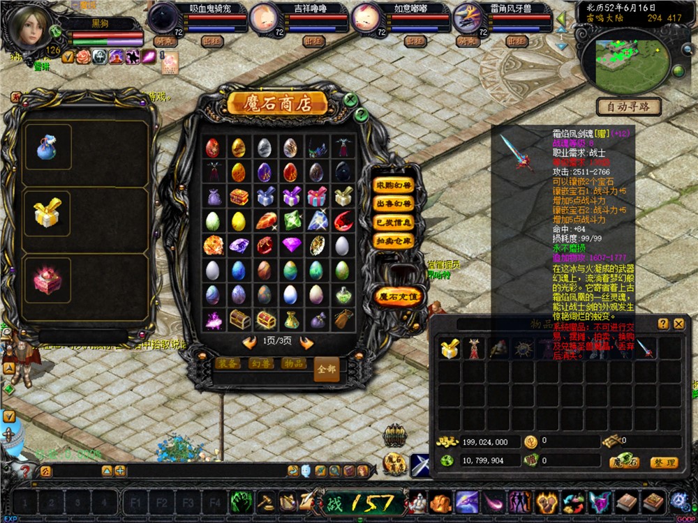 8、VIP7会员装备均为战魂+8或魔魂+12双洞大宝石;