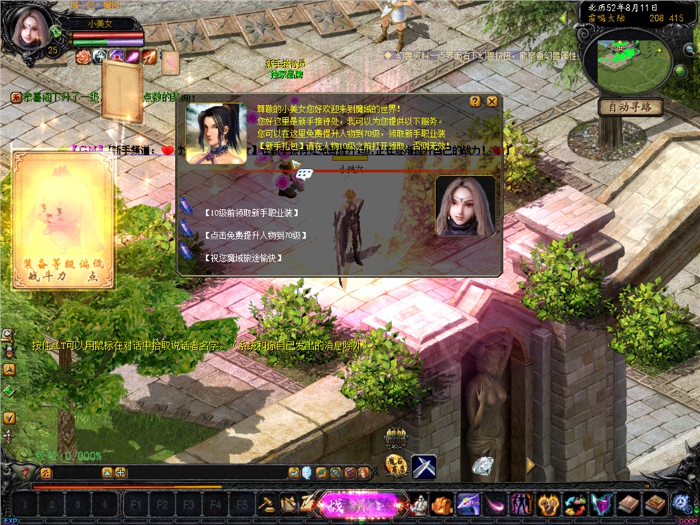 2.人物1-70级可在雷鸣等级提升大师免费提升,70级后迷宫、冰风、刷怪 刷导师经验升级,同步官方;