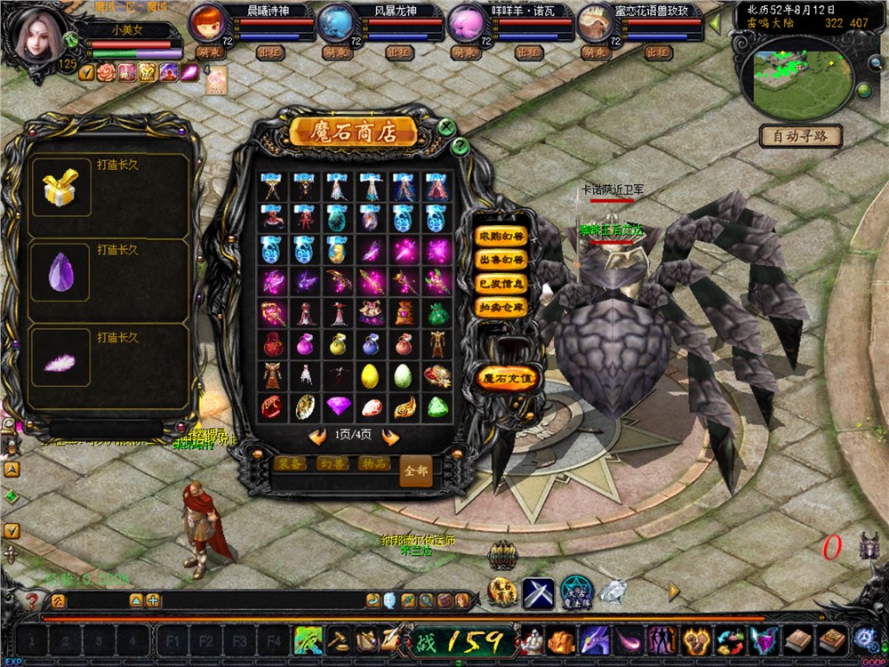 3.人物等级最高137级,装备+12带两洞,最高副宠25星,永久3宠,宝宝永久封200星;
