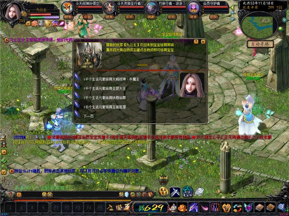 1、上线255级,御剑师九职业,微变修真版本,最高6宠;