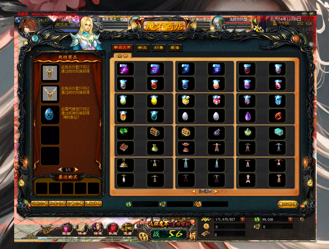 仿官方,最新的幻兽,年兽宝宝 官方最新坐骑 最新猴子 不名火舞等全新宝宝,添加了全新武器!战功兑换